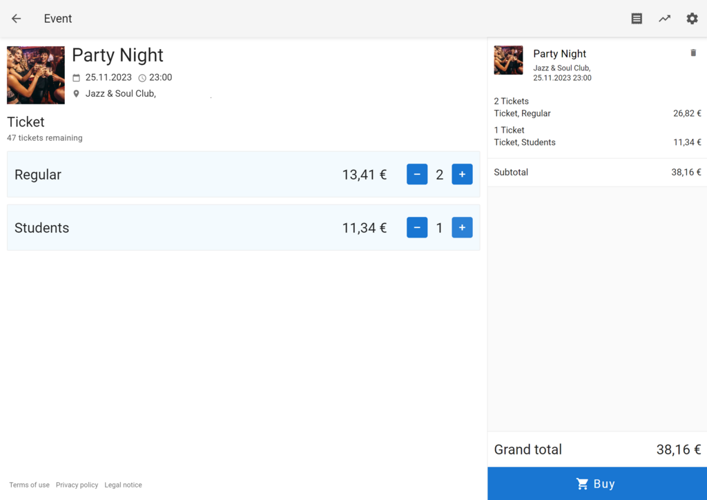 Our box office module is seamlessly integrated into your EVENTIM.Light account and can easily be used from any device.